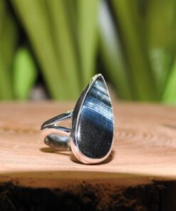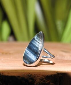 Blue Tiger Eye, also known as Hawk's Eye, is a deep blue variety of tiger eye with chatoyant bands that shimmer like silk. It is found in South Africa and Australia and is known for its calming and insightful properties.