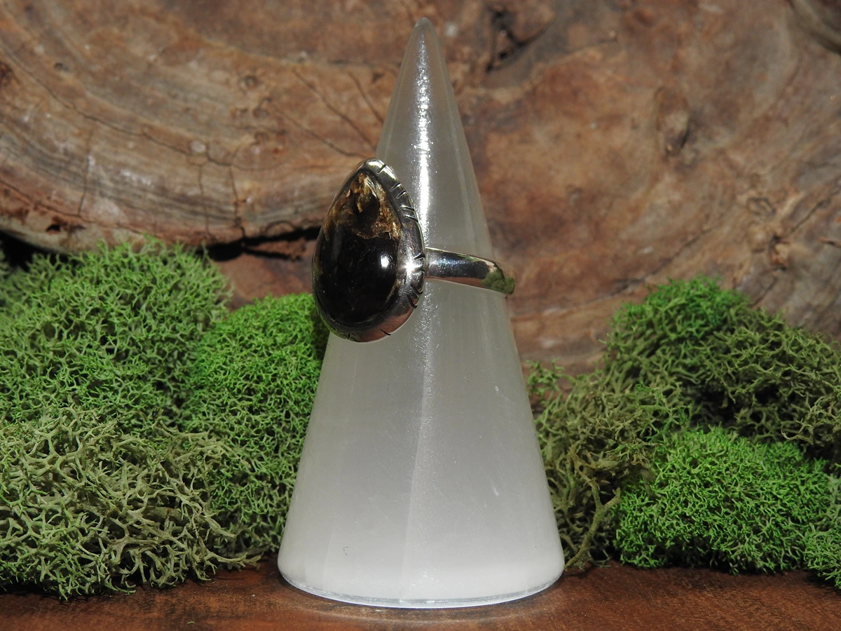 Golden Seraphinite is a rarer variety of seraphinite that includes golden to bronze chatoyant fibers within a dark matrix. Like its green counterpart, it is a form of clinochlore found in Siberia and known for its spiritual energy and layered shimmer.