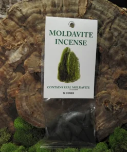 Special blend of essential oils and Real Moldavite. Actual Moldavite is added during the application of oils producing a very strong energy output during burning. 12 cones