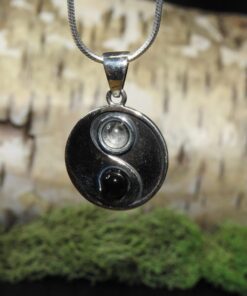Moonstone/Onyx Yin Yang Sterling Silver Pendant (.925)
