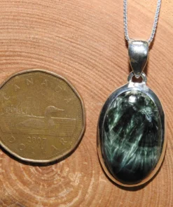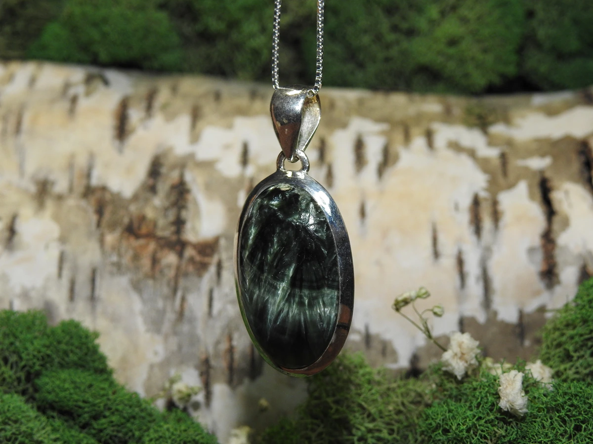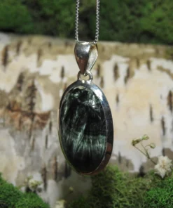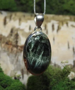 Seraphinite is a deep green stone with feathery silver inclusions, giving it an angelic, shimmering appearance. It is a variety of clinochlore and is found primarily in Siberia, Russia. Its chatoyancy and feather-like patterns make it a favourite among collectors and spiritual seekers.