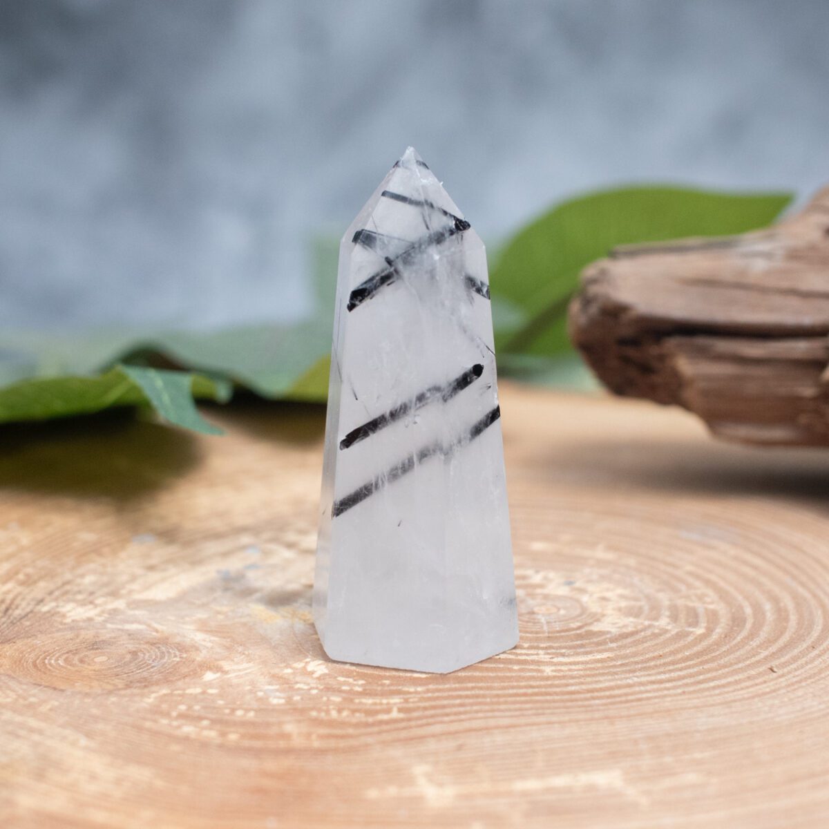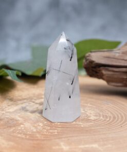Spiritually, tourmalinated quartz is associated with the root and crown chakras. It is believed to harmonize yin-yang energies, clear negativity, and protect the aura while promoting spiritual clarity. Many use it for grounding during meditation and to maintain emotional stability.