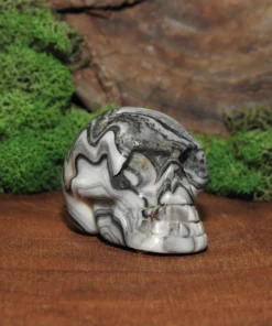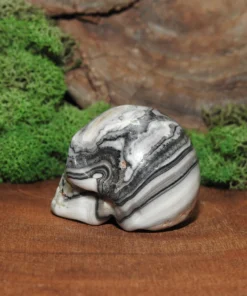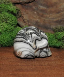 Zebra Jasper is a striking variety of jasper known for its contrasting black-and-white banding that resembles the stripes of a zebra. Found in regions such as South Africa and India, this stone is a form of chalcedony, part of the quartz family, and is valued for both its unique appearance and stabilizing energy. Polished zebra jasper is especially popular in jewelry and decorative pieces, symbolizing balance and harmony through its bold, patterned contrast.